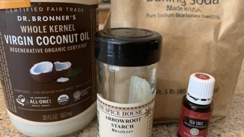 Natural and Effective Homemade Deodorant This easy to make deodorant really works and holds up all day. 6 TBS Organic Virgin Coconut Oil 1/4 cup Baking Soda 1/4 cup Arrowroot Powder 8 drops Tea Tree Essential Oil Combine all ingredients in a small bowl and blend thoroughly with a fork. Spoon into a clean … Continue reading Natural and Effective Homemade Deodorant